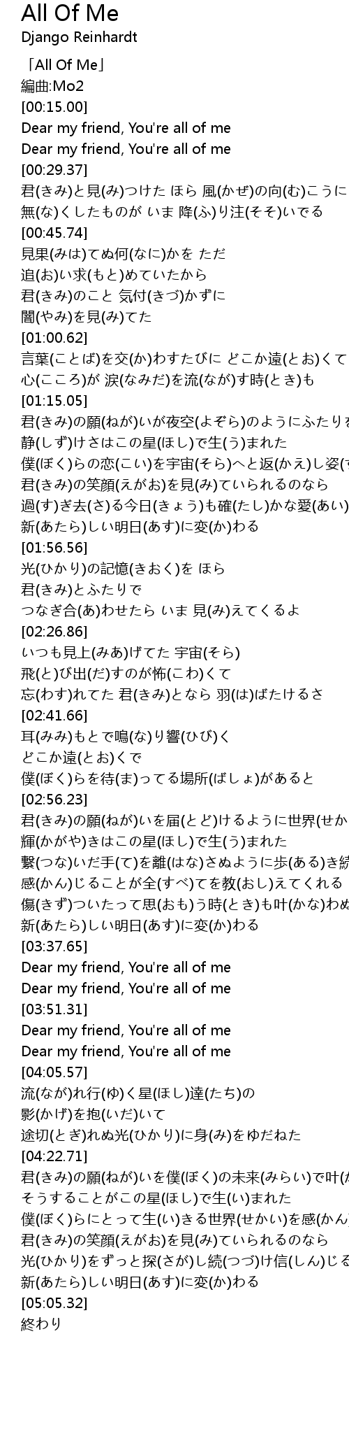 | [04:23.36] | 君(きみ)の願(ねが)いを僕(ぼく)の未来(みらい)で叶(かな)えるように |