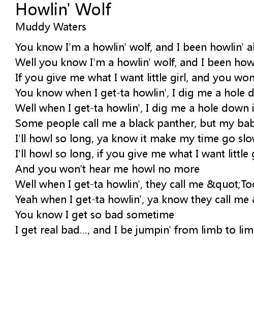Well you know I'm a howlin' wolf, and I been howlin' all around your door |