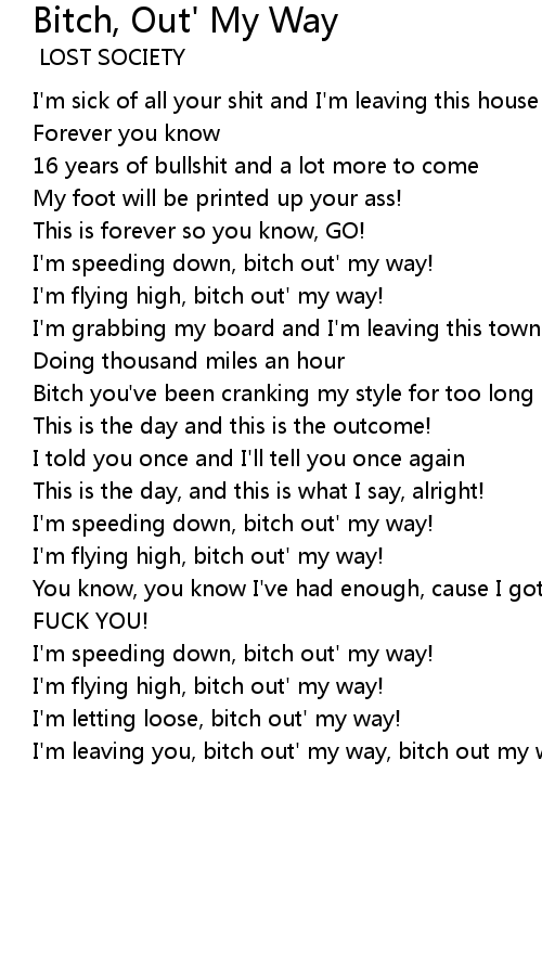 I'm leaving you, bitch out' my way, bitch out my way, bitch out my way!