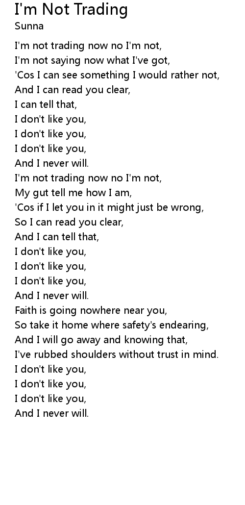 I'm not trading now no I'm not, |