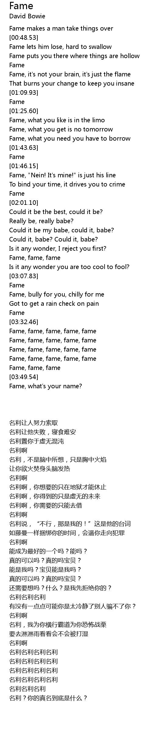 Fame, what's your name? |