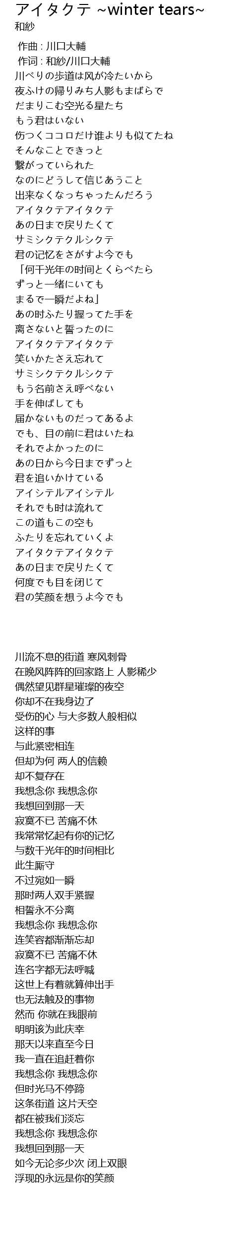 | [00:01.00] | 作词 : 和紗/川口大輔 |