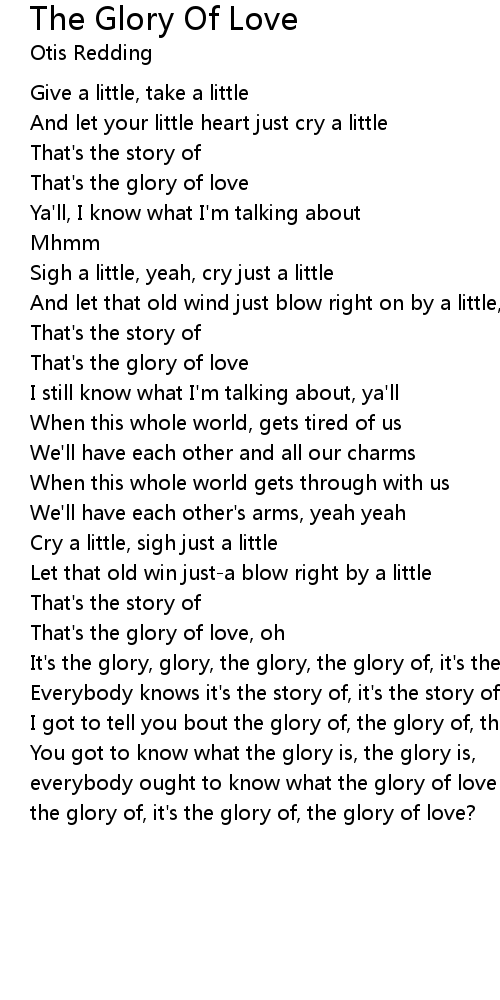 I got to tell you bout the glory of, the glory of, the glory of love |