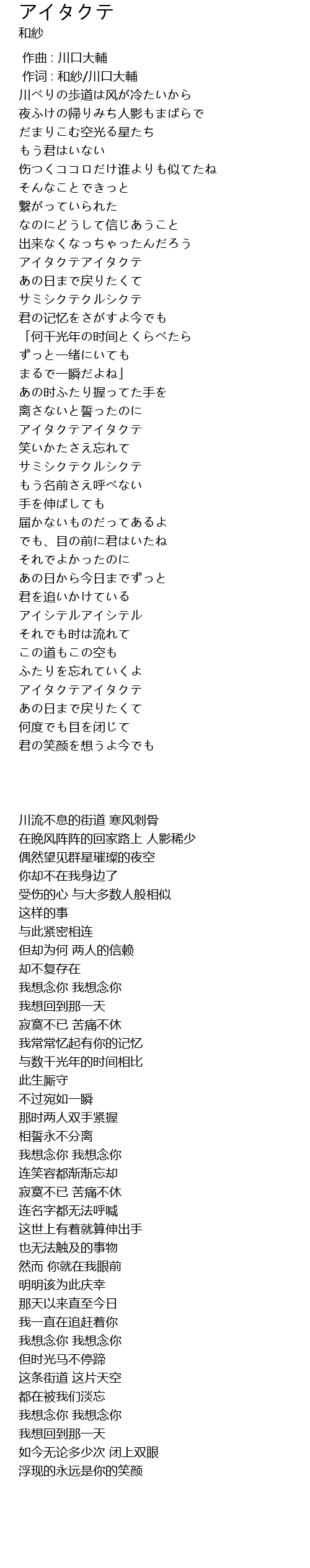 | [00:01.00] | 作词 : 和紗/川口大輔 |