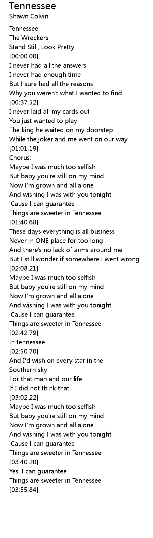Tennessee Lyrics