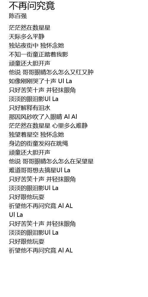 | [02:28.42] | 祈望他不再问究竟 Al AL |