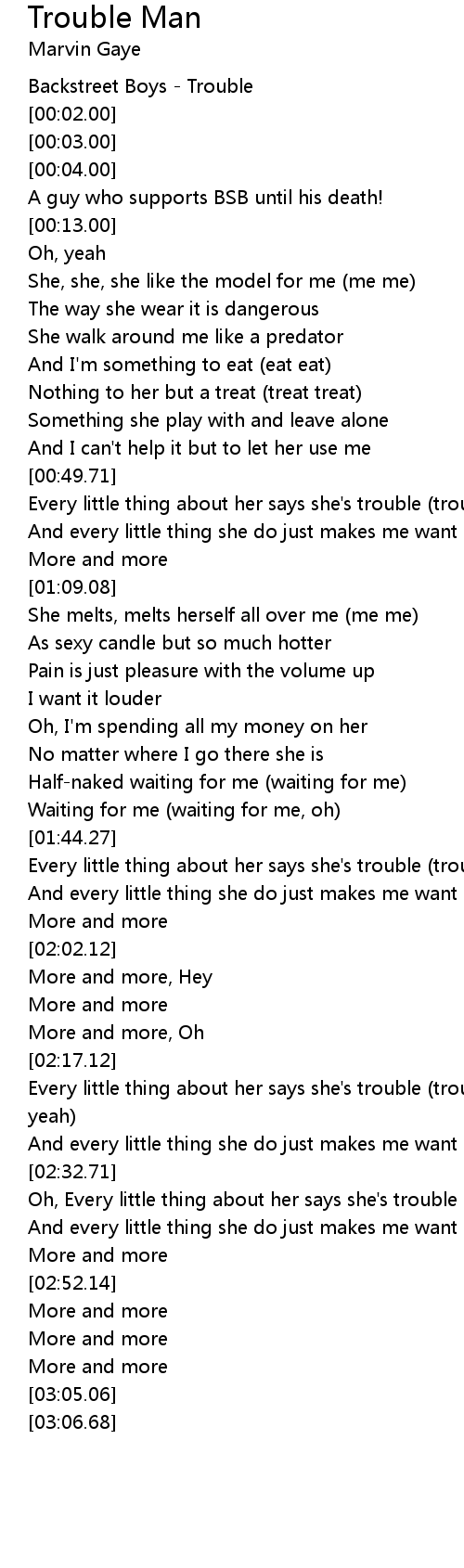 [02:33.21] Oh, Every little thing about her says she's trouble (trouble)