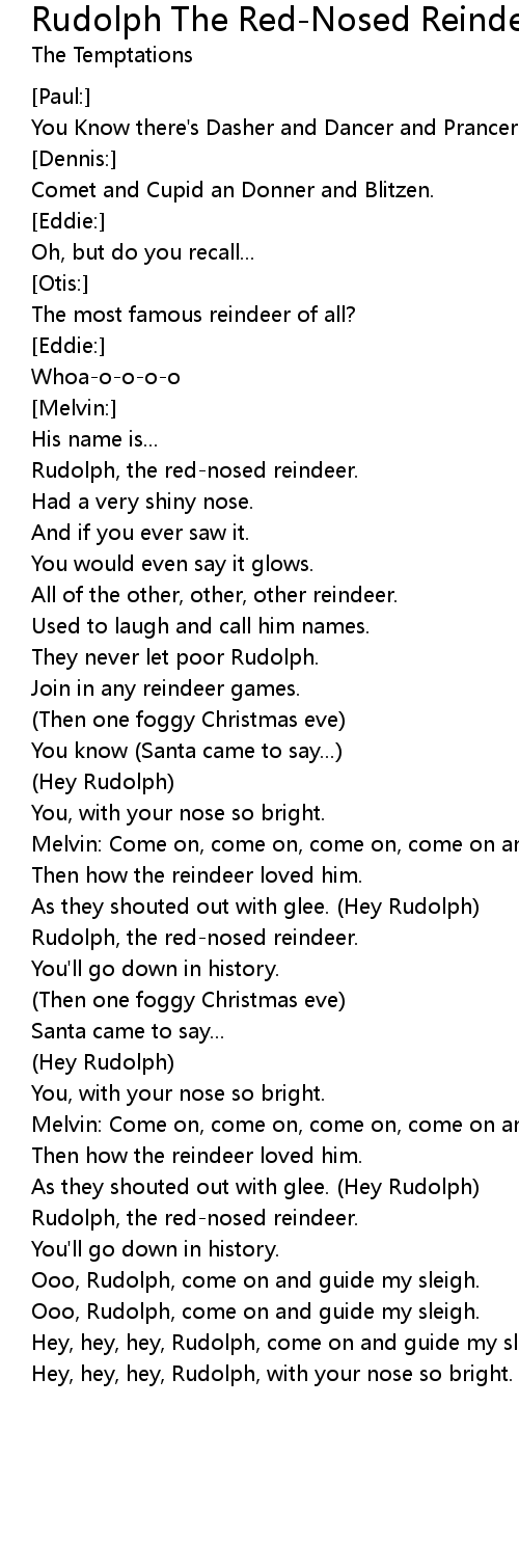 Hey, hey, hey, Rudolph, come on and guide my sleigh tonight. |