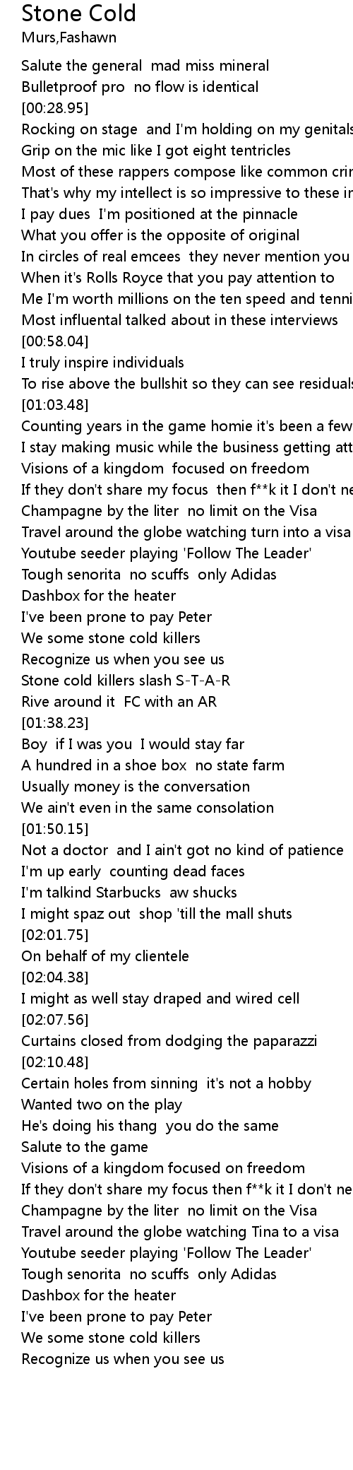 | [01:32.62] | Stone cold killers slash S-T-A-R |