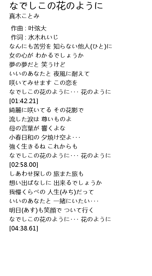 | [04:19.20] | なでしこの花のように・・・ 花のように |