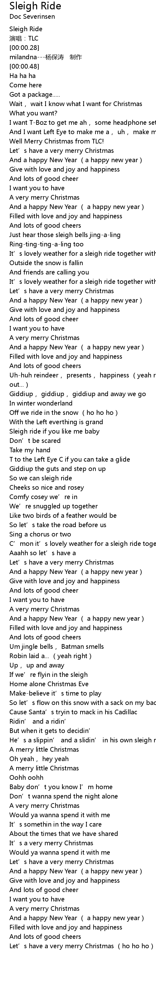 | [00:17.50] | Well Merry Christmas from TLC! |