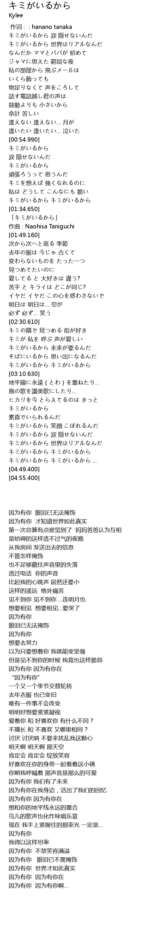 | [01:37.160] | 「キミがいるから」 |