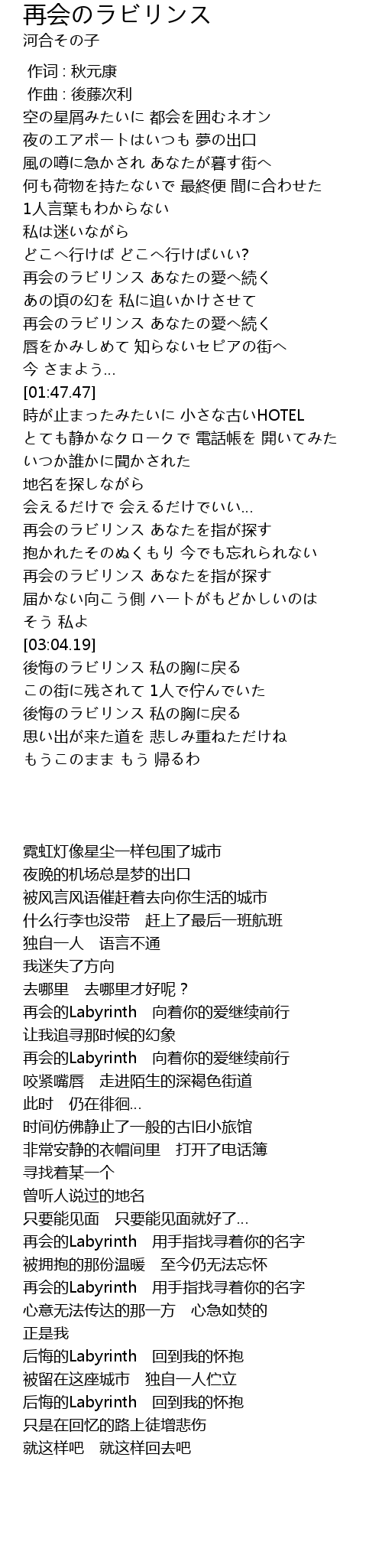 | [01:26.26] | 再会のラビリンス あなたの愛へ続く |