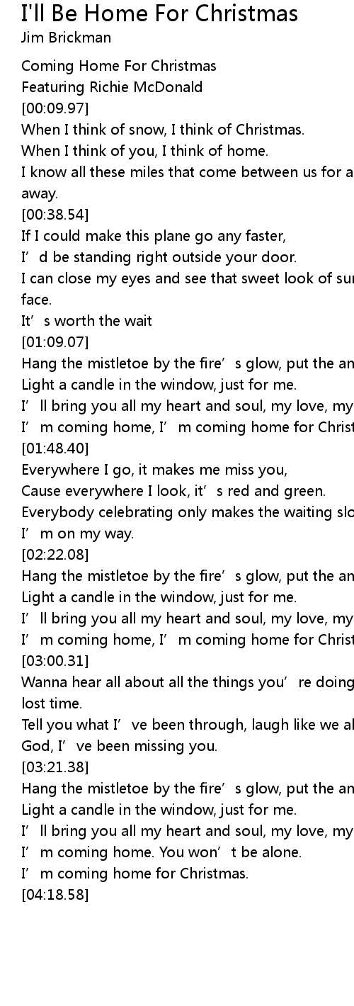 | [01:35.62] | I' m coming home, I' m coming home for Christmas. |