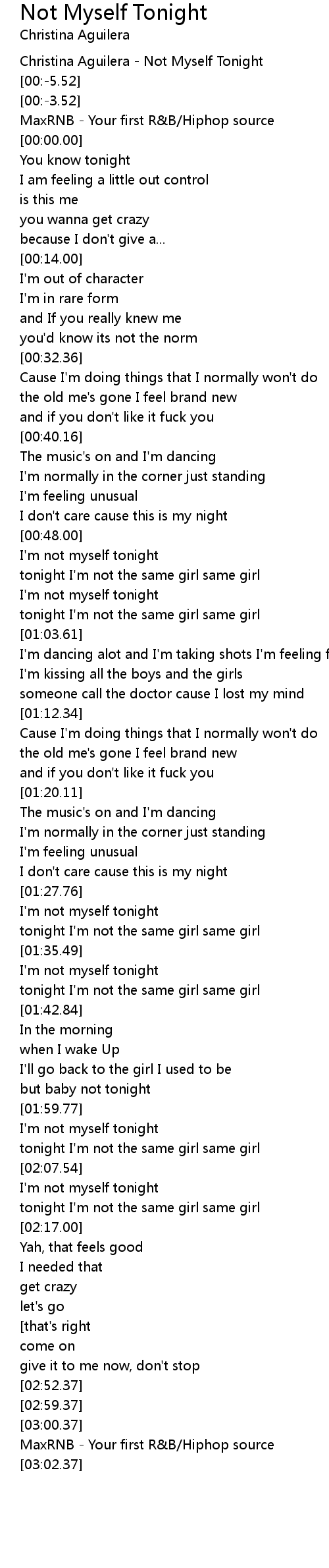 Christina Aguilera - Not Myself Tonight |