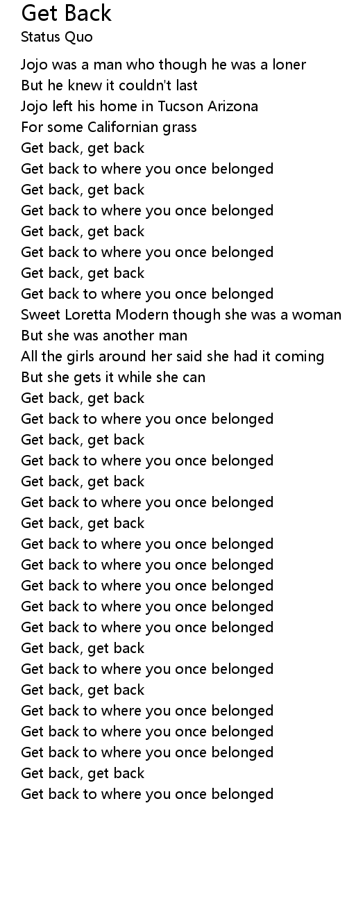 Get back to where you once belonged