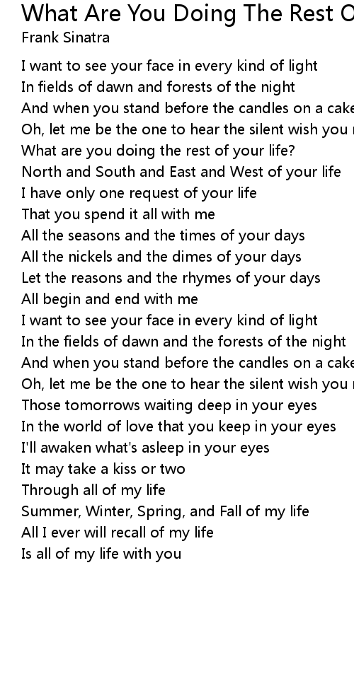 What are you doing the rest of your life? |