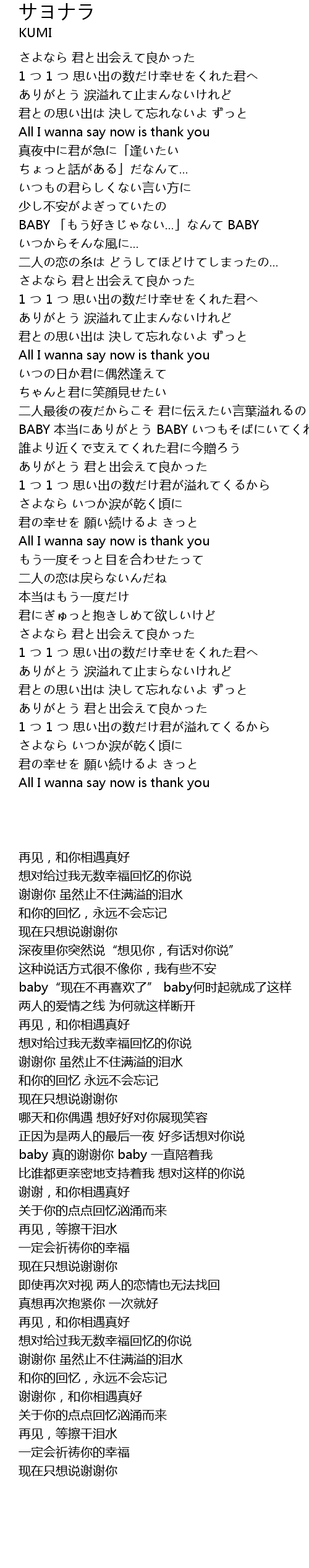 | [00:11.33] | さよなら 君と出会えて良かった |