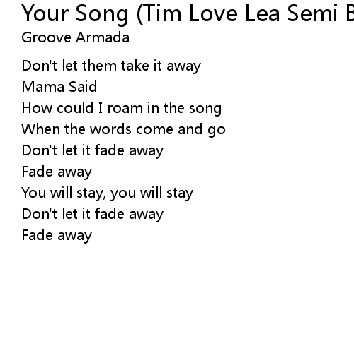 | Song | Your Song (Tim Love Lea Semi Bearded Mix) |