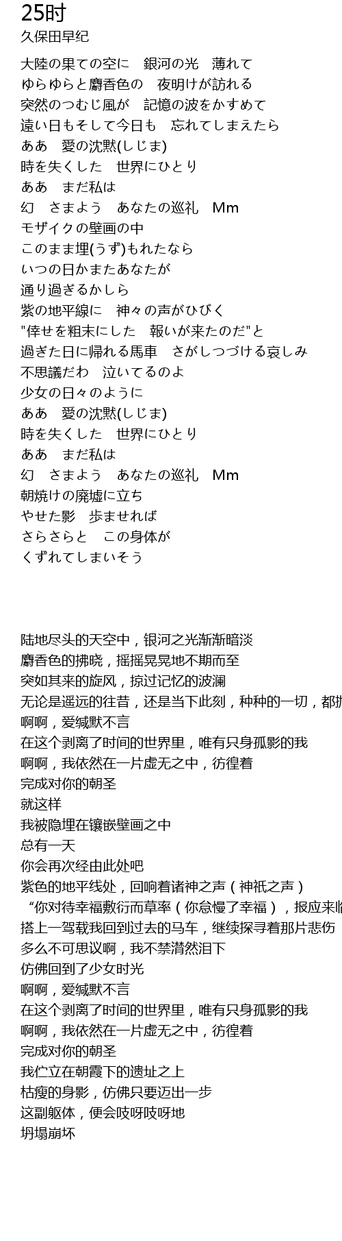 | [01:26.10] | 幻 さまよう あなたの巡礼 Mm |