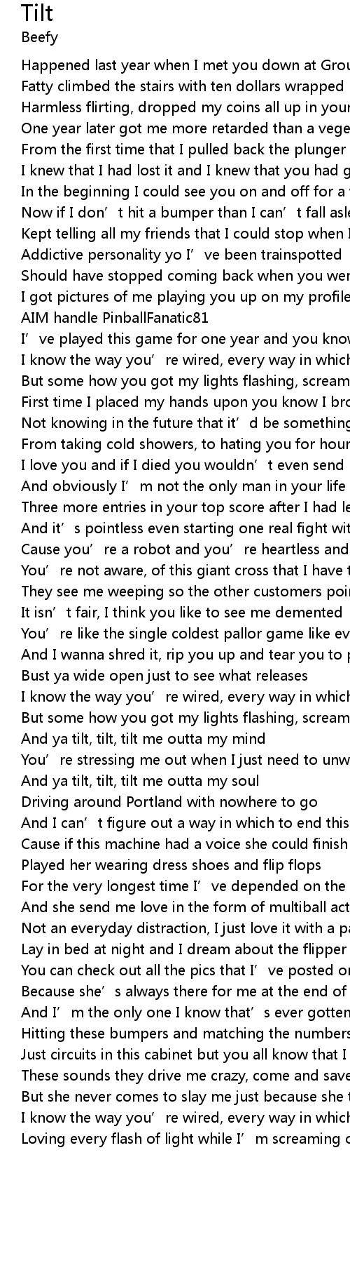 | But some how you got my lights flashing, screaming out TILT! | |