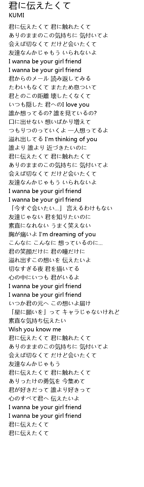 君に伝えたくて jun chuan Lyrics