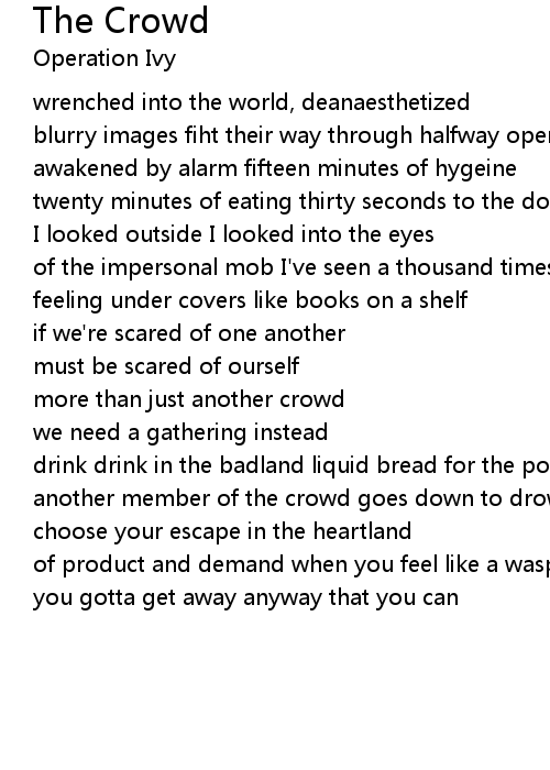 of the impersonal mob I've seen a thousand times before |