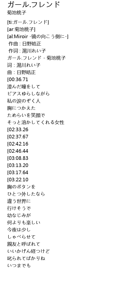 | [00:00.46] | ガール.フレンド - 菊池桃子 |