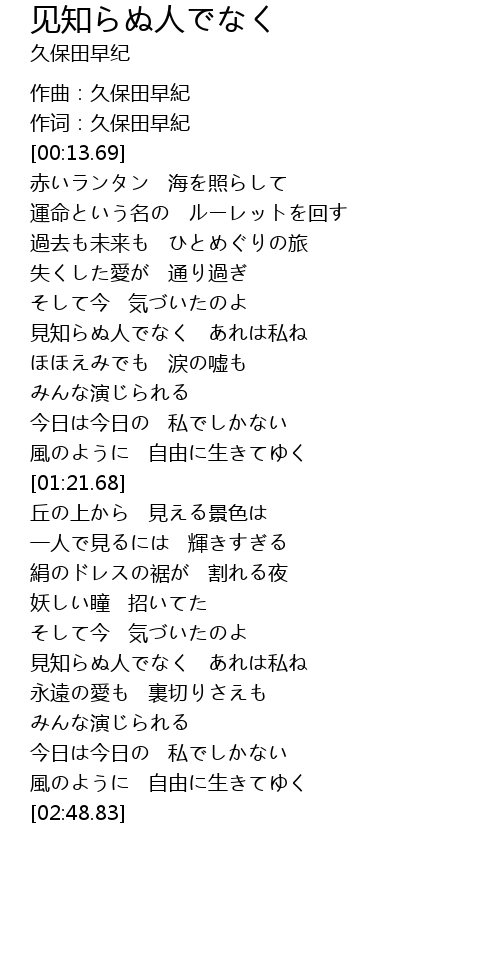 | [02:14.42] | 見知らぬ人でなく あれは私ね |