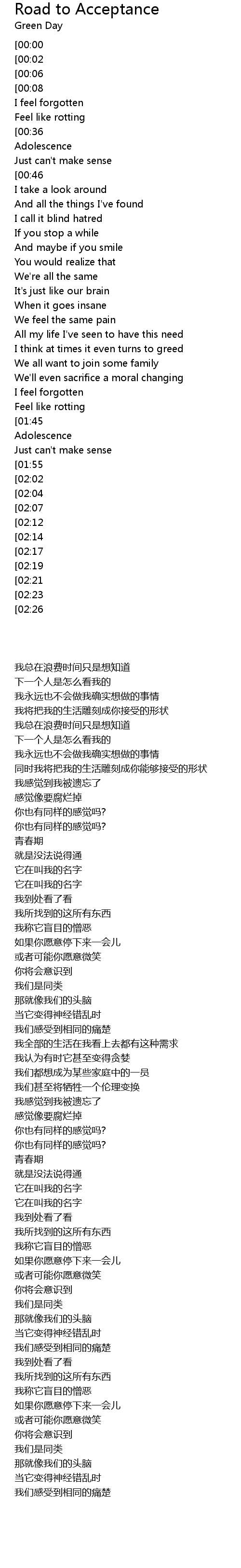 | [00:27][00:08] | And I'll sculpt my life for all your acceptance |