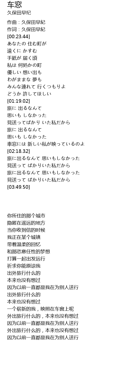 | [02:04.13] | 車窓には 新しい私が映っているのよ |