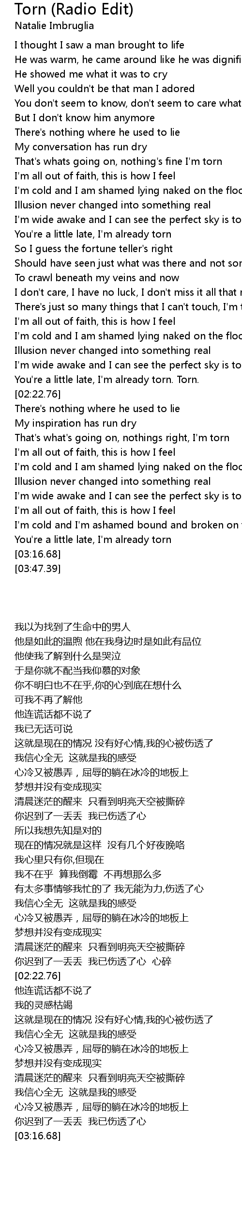 You're a little late, I'm already torn. Torn. |