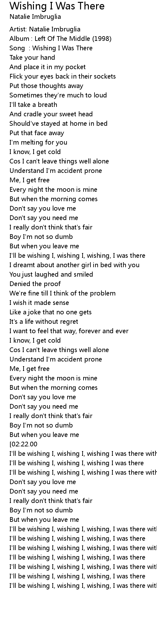 [02:28.00][02:22.00] I'll be wishing I, wishing I, wishing I was there