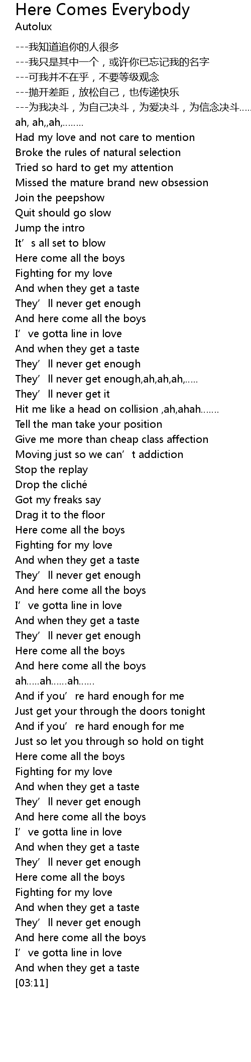 | [01:09] | They’ll never get enough,ah,ah,ah,….. |