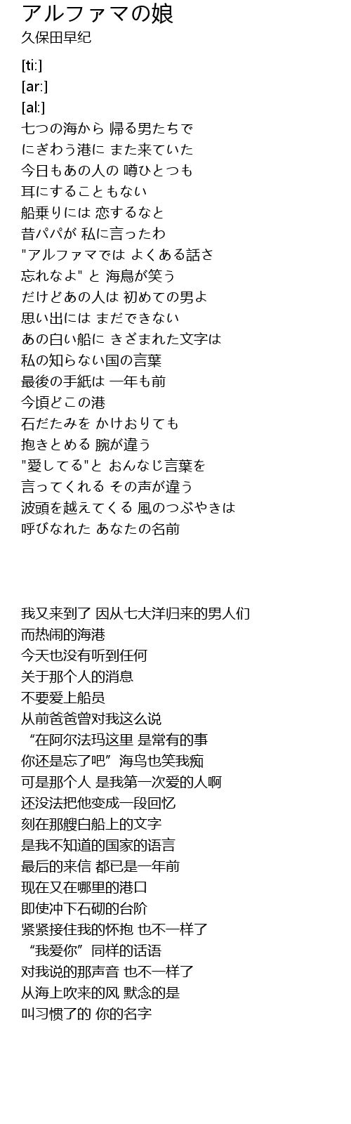 | [00:15.64] | 七つの海から 帰る男たちで |