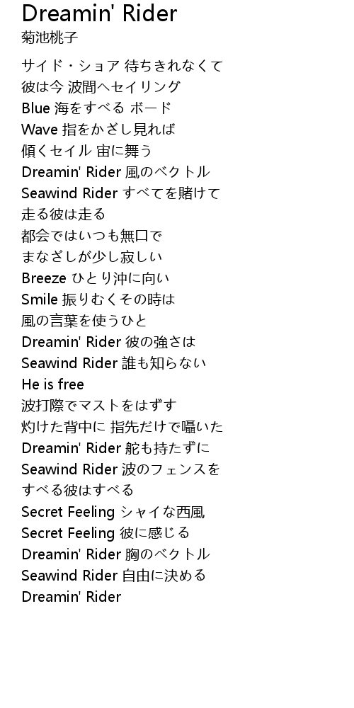 | [02:42.651] | Dreamin' Rider 舵も持たずに |