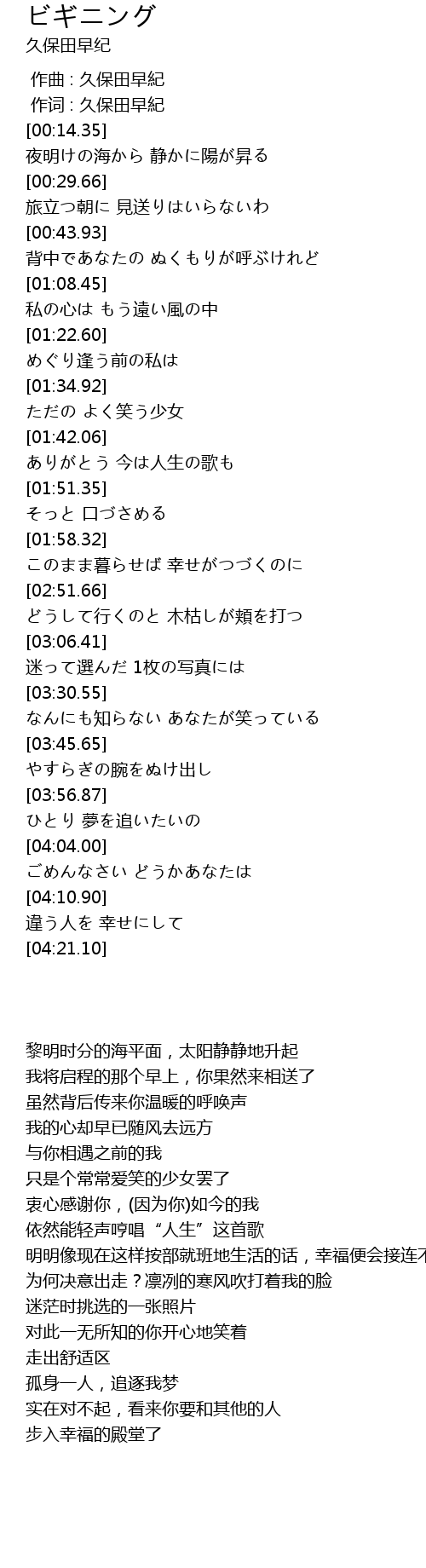 | [00:01.00] | 作词 : 久保田早紀 |