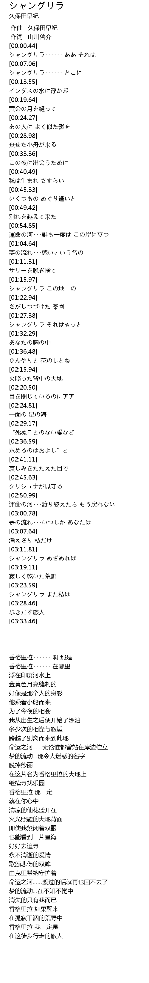 | [00:00.62] | シャングリラ・・・・・・ ああ それは |