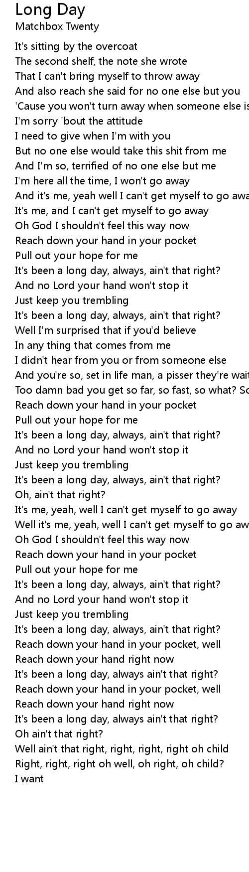It's been a long day, always, ain't that right? |
