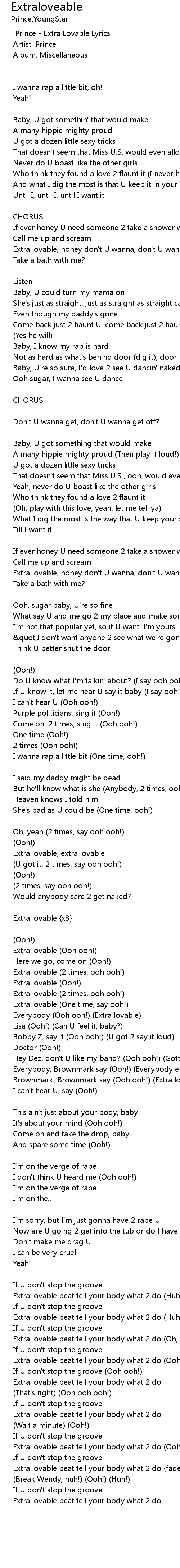 | Extra lovable, honey don't U wanna, don't U wanna | |