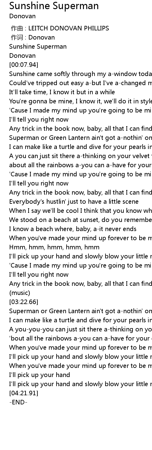 | [00:00.00] | 作曲 : LEITCH DONOVAN PHILLIPS |