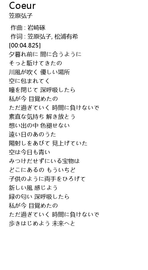 | [00:01.000] | 作词 : 笠原弘子, 松浦有希 |