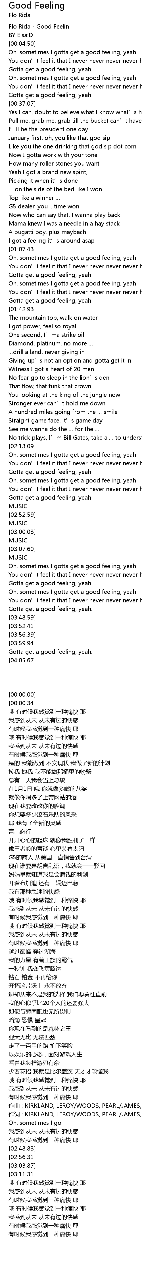 | [00:00.00] | Flo Rida - Good Feelin |