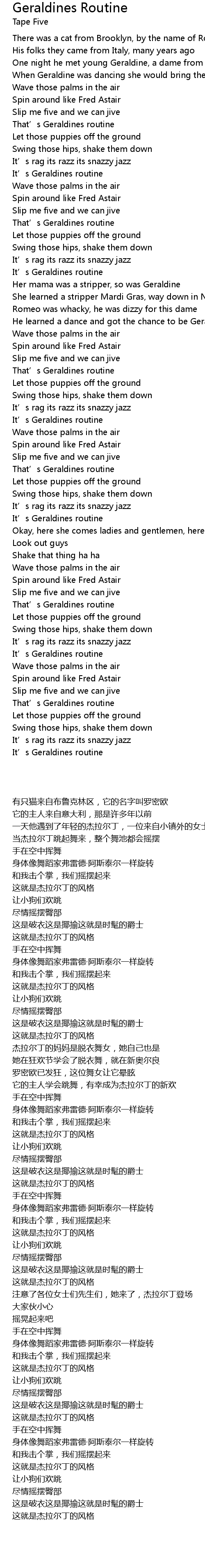 | [01:21.44] | Her mama was a stripper, so was Geraldine |