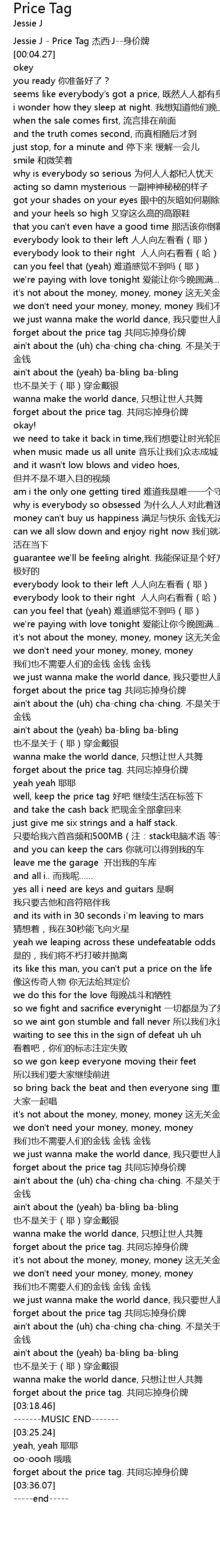 | [00:01.26] | Jessie J Price Tag jie xi J shen jia pai |