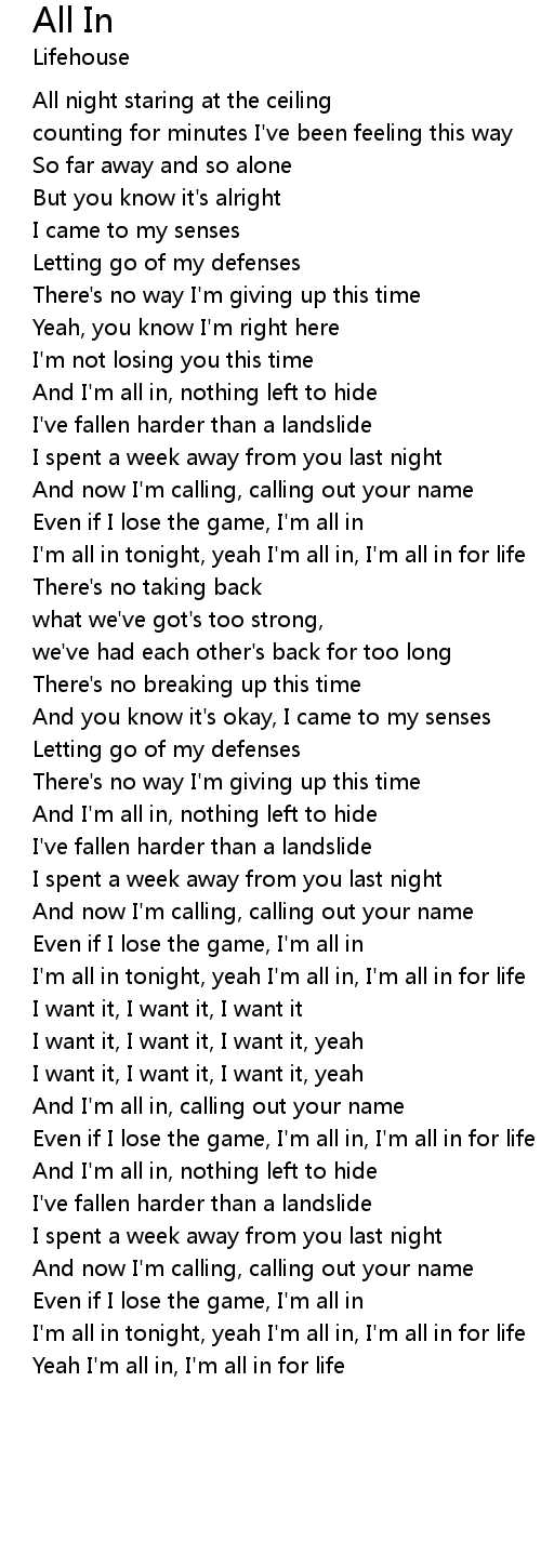 Yeah I'm all in, I'm all in for life |