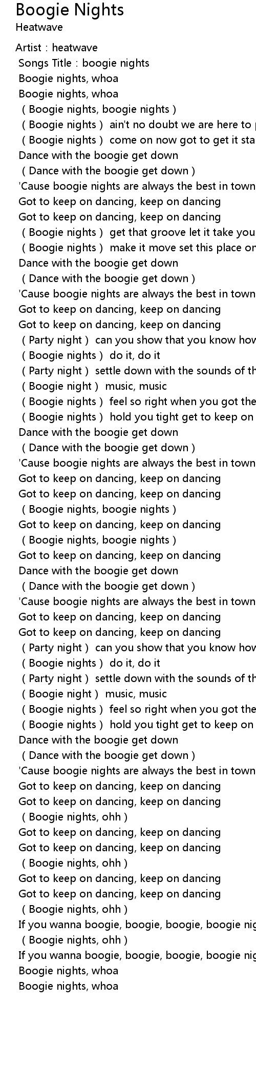 | Songs Title:boogie nights | |