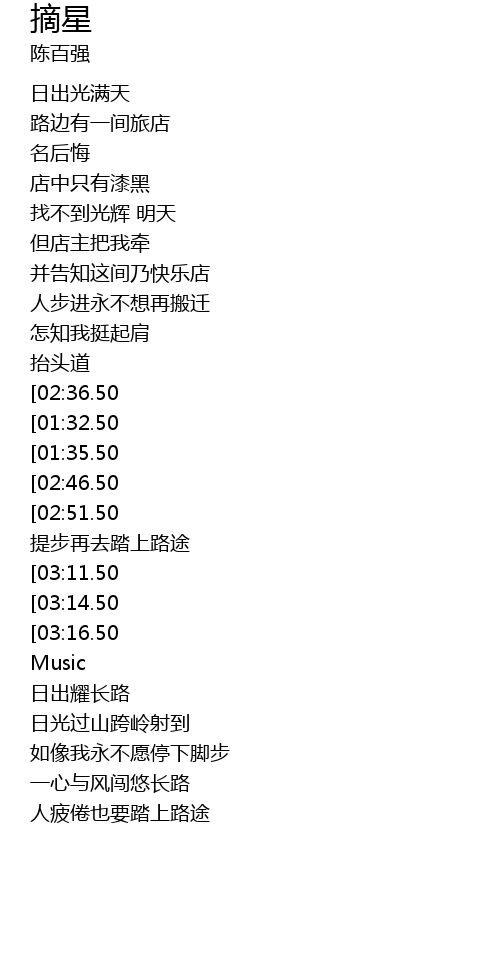 | [01:15.50][01:35.50][02:42.50][03:06.50] | 我要摘星不做俘虏 |