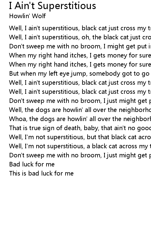 Well, I ain't superstitious, oh, the black cat just cross my trail |