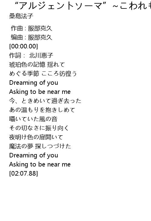 | [00:23.26] | めぐる季節 こころ彷徨う |